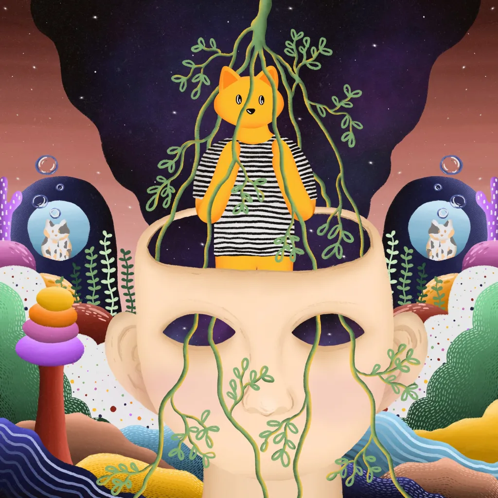 As you can tell from my twitter username, I love cats. They are my soul mates and I want to immortalize my love for cats with my artworks. Additionally, my inspiration for my drawings come from my imagination where I often incorporate magical, dreamy and colorful elements to complete my drawing.